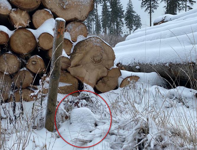 November 2023: erneut Holzlager hinter dem Stein, Beschwerde, bisher ausser Lesebestätigungen auf meine Mails, keine Reaktion