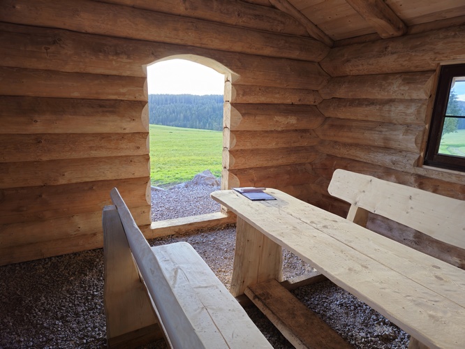 Der Bau der Hütte erfolgte mit Fichtenholz.