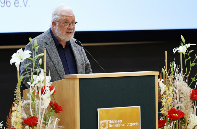 Für den als Nummer 6 gesetzten Preisträger, dem Rennsteigverein 1896 e.V. hielt der Präsident des Landesamtes für Denkmalpflege und Archäologie Dr. Sven Ostritz persönlich die Laudatio.