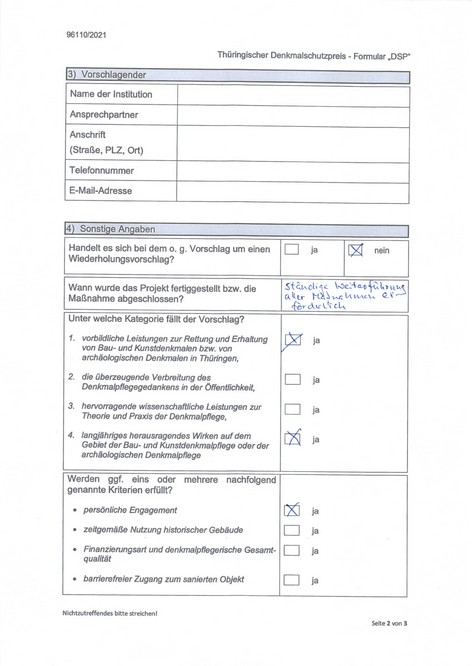 Die Untere Denkmalschutzbehörde des Landkreises Hildburghausen in Person ihres Mitarbeiters Daniel Reiche, schlug uns zu Beginn des Jahres 2025 für die diesjährige Preisverleihung vor.
