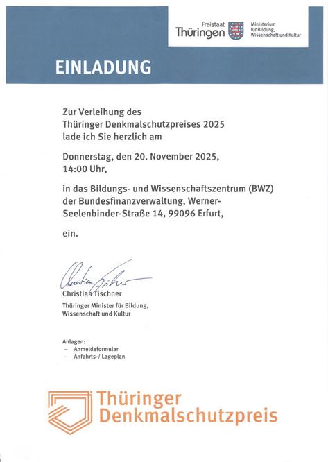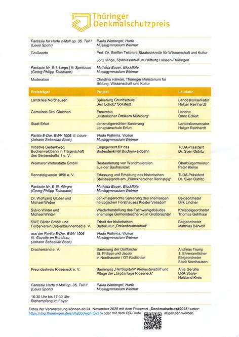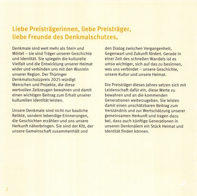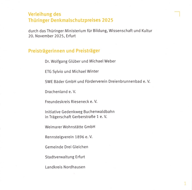 Thüringer Ministerium für Bildung, Wissenschaft und Kultur: Auszüge aus der offiziellen Broschüre zum Thüringer Denkmalschutzpreis 2025